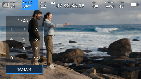 Örtücü açısı, değişen ışık koşullarına göre ayarlama yapmanıza veya görüntünüzdeki hareket bulanıklığını kontrol etmenize olanak tanır. Bunu manuel olarak ayarlayabilir veya göstergeye dokunarak önerilen hızlar arasından seçim yapabilirsiniz.