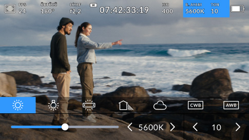 Denetim merkezi ekranı ya da HUD; kare hızı, diyafram, zaman kodu, bulut ve yayın durumu, örtücü açısı, beyaz ayarı, ISO ve ses seviyeleri gibi birçok önemli bilgi içerir. Sadece bir yukarı ya da aşağı kaydırma hareketiyle, denetim merkezi ekranını görüntüleyebilir ya da gizleyebilirsiniz. Örneğin; beyaz ayarı gibi ayarları düzenlemek için sadece WB göstergesine dokunmanız ya da ses seviyelerini düzenlemek için ses göstergelerine dokunmanız yeterlidir. Her şey etkileşimli olduğu için herhangi bir göstergeye dokunarak, karmaşık menülerde aramadan o ayarı anında değiştirebilirsiniz!