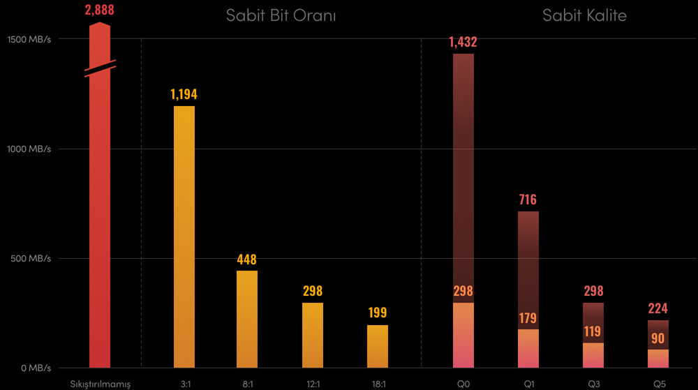 Geleneksel RAW formatları ile çalışmak güçtür, çünkü dosyaları çok büyüktür, patentlidir ve son derece yoğun işleme gücü gerektirmesi onları yavaş ve verimsiz yapar. Geleneksel video kodekleriyle çalışılması daha hızlı olsa da 10 bit ile sınırlı olduğundan, kalitede kayıp oluşur ve kullanılan 4:2:2 video filtresinden dolayı renkteki ayrıntı son derece azalır. Blackmagic Design mühendisleri, bu sorunları çözmek için uzun yıllar üzerinde çalıştı ve de-mosaic işleminin bir parçasını, bilgisayarın CPU’sundan kameraya aktaran, yeni bir RAW kodek oluşturdular. Sonuç olarak, yepyeni bir yüksek performanslı RAW deneyimi için, inanılmaz derecede etkili kodlama sistemi geliştirdiler. Blackmagic RAW ile; RAW kalitesinin, bit derinliğinin, dinamik aralığının ve kontrollerinin aynısına, daha iyi performansla ve geleneksel video kodeklerinden bile daha küçük dosya boyutlarıyla sahip oluyorsunuz!