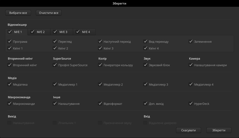 Макроси дозволяють спростити роботу в ефірі, так як створення контенту в реальному часі є сукупністю комплексних операцій. Щоб автоматизувати зміну джерел зображення, використання кеїнгу та графіки, достатньо відкрити спеціальне вікно, вибрати функцію запису та виконати потрібні дії на мікшері. Їх послідовність зберігається на ATEM Constellation 8K у вигляді файлів XML, які можна редагувати та поєднувати один з одним. Після цього для запуску команд залишиться лише натиснути кнопку, причому вони доступні не тільки у додатку ATEM Software Control, а і на зовнішніх апаратних панелях.