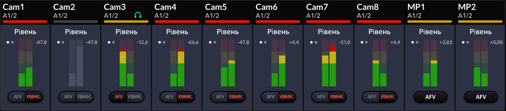 Вибір налаштувань для всіх функцій відеомікшера