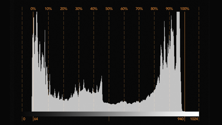Clipping levels on a live shoot results in loss of detail, which can cause huge problems when you try to adjust ‘blacks’ or ‘whites’ in post production. Histogram view lets you see where the pixels are in your video, and how they are distributed from black to white. You can see if your video is clipping and adjust the camera iris and ISO settings to keep all black and white detail in the image. This means you have the full contrast range of video for easy color correction during post production. Histogram will transform your shoots because you can see exactly what you're recording and the colorist who works on your job will benefit from the availability of the full contrast range of the camera!