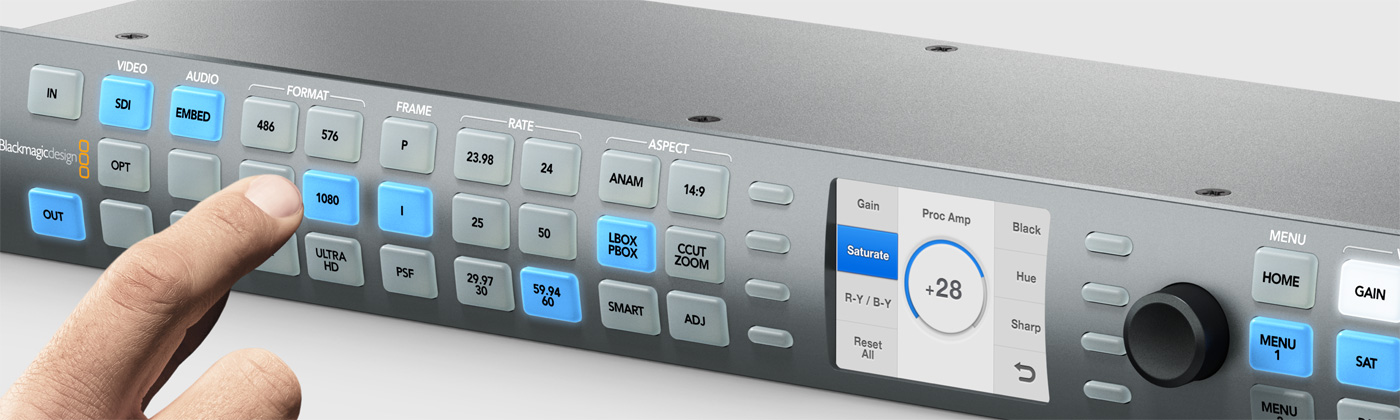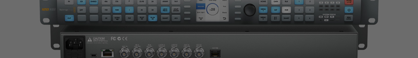 Teranex standards converters feature a machined aluminum design that not only looks great in your studio, but also provides exceptional durability for installation in broadcast trucks and portable racks. You get a compact 1 rack unit design with built in LCD monitor, familiar Teranex control panel that’s easy to use and broadcast quality connections for 24/7 reliability.