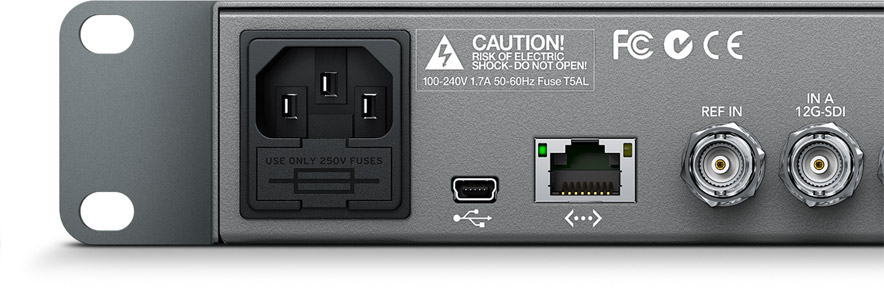 Teranex standards converters include a built in 110/240V international power supply with a standard IEC connection so you can use it anywhere in the world. The international power supply is perfect for when broadcast trucks and mini racks are used in different countries because all you need to do is source a local power cord and your Teranex will switch voltage automatically.